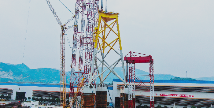長(zhǎng)樂外海(hǎi)海上風電場C區項目位於福州市長樂區東部海域、閩(mǐn)江口(kǒu)南岸,場址距離長 樂海岸線31千米~50千米海域,平均水深37米~45 米。福建(jiàn)船政承接(jiē)該項目25套吸 力式導管(guǎn)架製作工程(chéng),其中單套三筒導管架高度近百米,底部最大尺寸超40米,單套導(dǎo)管 架最大重量(liàng)約(yuē)1200噸。